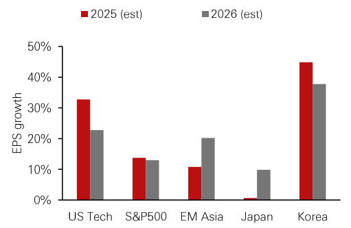 • AI adoption and domestic consumption are twin tailwinds for Asia. In South Korea, strong memory demand, solid earnings expectations and the Corporate Value-Up programme justify our overweight stance. Japan is also upgraded to overweight, supported by a re-rating opportunity linked to the new Prime Minister’s agenda, governance reforms and record-high share buybacks. These upgrades complement our preference for mainland China, Singapore and Hong Kong, as well as Asian investment grade credit, reflecting the positive momentum in the region.