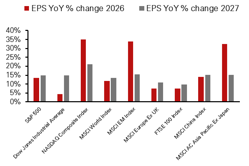 • While the US Supreme Court limited the use of IEEPA, the administration quickly responded with a 15% global tariff using Section 122. Import-reliant sectors may benefit from lower near-term cost pressures and reduced legal uncertainty. Overall, resilient US growth, solid earnings and continued AI momentum support our bullish view on US equities, while total tariff revenue is expected to remain stable in 2026, which is also positive for bonds. We favour US investment grade credit over high yield.