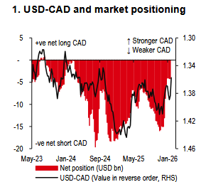 The Bank of Canada highlighted these concerns at its 28 January meeting, where the policy rate was kept at 2.25%, in line with expectations. Given these uncertainties, we maintain a cautious outlook for the CAD in 2026, despite robust domestic data that would usually support a stronger currency. Over the near term, USD-CAD could drop further, reflecting broad USD weakness, though trade uncertainty may present upward risk.