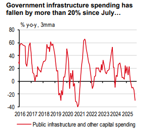 Amid all the uncertainty in politics and policy, growth disappointed in the third quarter of 2025, falling by 0.6% q-o-q seasonally adjusted. Services exports continued to contract with the tourism sector still finding its feet after its stumble earlier in the year. Meanwhile, passing the baton from one Prime Minister to another was a two-month process, which eventually led to fiscal standstill. Government spending fell, dragging growth down by as much 1.1ppt.