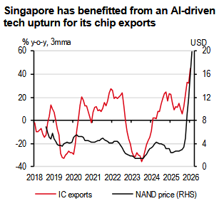 But we have entered the Year of the Horse with unprecedented challenges, and Singapore is not immune. After the US Supreme Court ruled the use of IEEPA tariffs unconstitutional, the US administration announced the imposition of a global 10% tariff under Section 122, valid for 150 days unless Congress extends the tariff. Meanwhile, the US administration has also launched a range of Section 301 investigations that could lead to additional tariffs. While this leaves Singapore exposed, robust AI hardware demand globally should help provide some cushion against the impact.