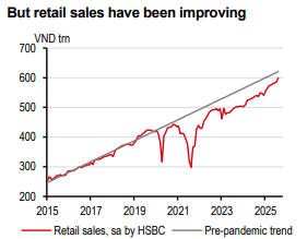 But it’s not just frontloading, 2Q growth is broad-based. The services sector saw strong performance, given decent growth in externally-oriented trade services as well as tourism-related sectors. The trend is also corroborated in retail sales, with the gap between the actual outturn and the pre-pandemic trend narrowing to 6%. Vietnam also saw the fastest tourism recovery in ASEAN.
