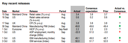 Due to the government shutdown in the US, we’re entering a bit of a data vacuum at a crucial time. The US labour market is showing clear signs of cooling, and private sector data and surveys will be given even more importance until we get the next sets of official payrolls and inflation data. The Federal Reserve has already delivered a 25bp rate cut at its September meeting and we expect an additional two 25bp rate cuts this year.