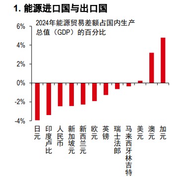 石油和天然气价格走高,削弱了日元、瑞士法郎等货币的传统避险支撑,同时对能源净进口需求较大经济体的货币构成更大压力(图1)。在美元走强的环境下,仅有加元、澳元等少数货币有望表现坚挺。