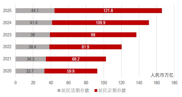 我们尤其看好中国居民“存款搬家”的潜力。截至2025年末,中国居民存款总额为165.9万亿元,其中包括44.1万亿元的活期存款和121.8万亿元的定期存款。期限结构分析显示,约70%的定期存款或在一年内到期,剩余的定期存款或在一年后到期。基于当前市场情绪改善、来自个人投资者的融资融券业务改善、以及中国存款利率下调这一大背景,股市财富效应的刺激有望进一步推动中国居民存款搬家的进程。汇丰前海证券对过去十年的存款转移率与定期存款利率变动和股市指数涨幅等指标进行了分析,预2026年存款转移率或达15%,全年存款搬家总规模或可达到3.8万亿元。