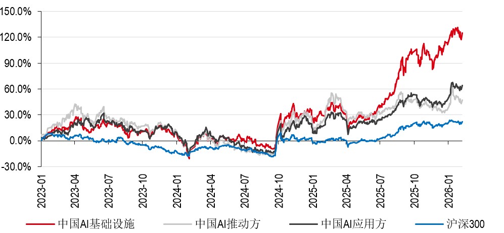 近期,虽然海外市场对于AI技术的认知转向理性审视,但是我们对于中国科技领域股票的中长期看好观点不变,这主要基于基本面发展继续支持我们对行业的积极看法。一方面,中国科技硬件企业出海业务具备竞争力,且持续深度融入全球产业链。另一方面,算力基础设施的国产替代也在加速。从市场表现看,2026年年初以来和回顾过去几年,以国内AI基础设施公司为代表的人工智能行业依然持续跑赢大市。